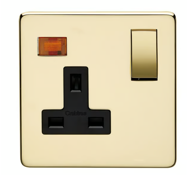 Crabtree 13A 1 Gang DP Switched Socket with Neon Indicator (Gold)