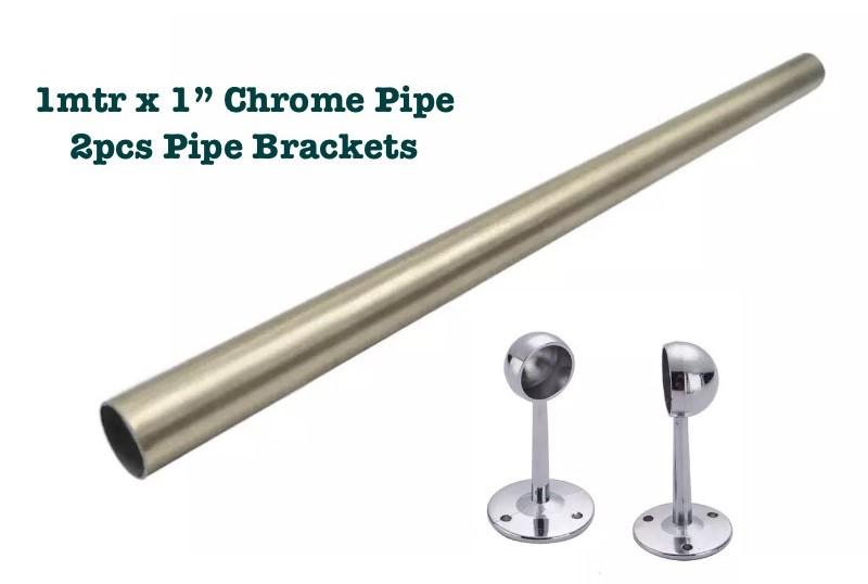1mtr x 1″ Chrome Pipe 2pcs Pipe Brackets