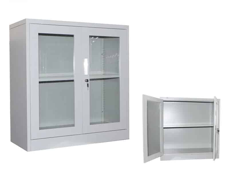 The 2 Glass Door Steel Cabinet is designed for secure storage with clear visibility. With a 90 × 90 × 40 cm size, it offers balanced storage for offices and institutions. The glass fronted cabinet allows easy viewing of contents. Strong steel construction ensures durability and long-term use.