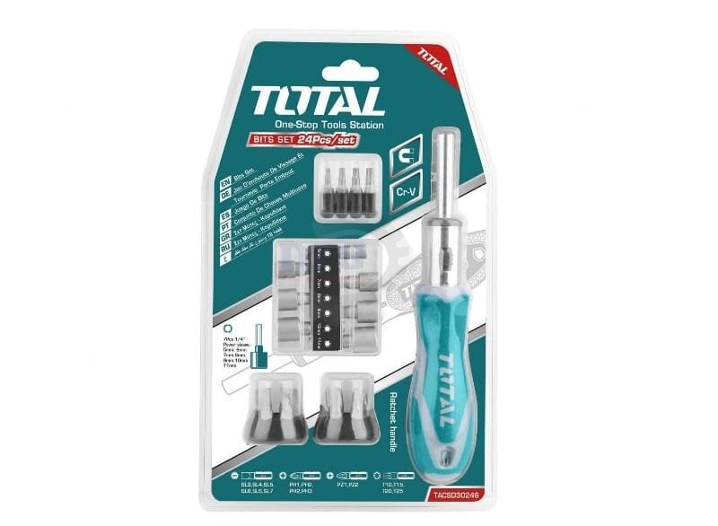 Equip yourself for various screw driving jobs with Total’s versatile 24-piece ratchet screwdriver set. Includes multiple bits & sizes.
