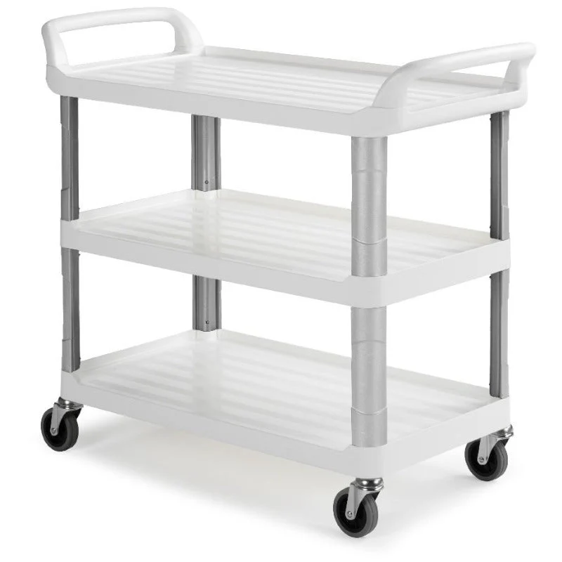 3 shelves trolley with polypropylene stanchions and shelves ,Ideal for carrying or storing equipment and for serving…