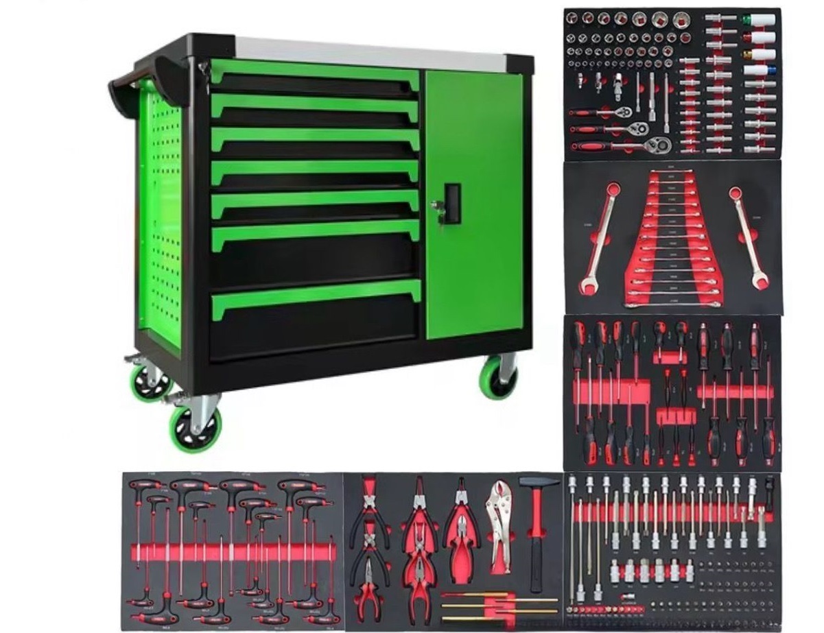 7 Drawers Trolley with Cabinet and 258pcs Tools