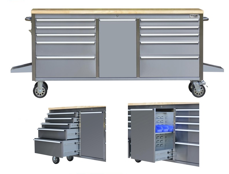 55" Stainless Steel 10 Drawers Workstation