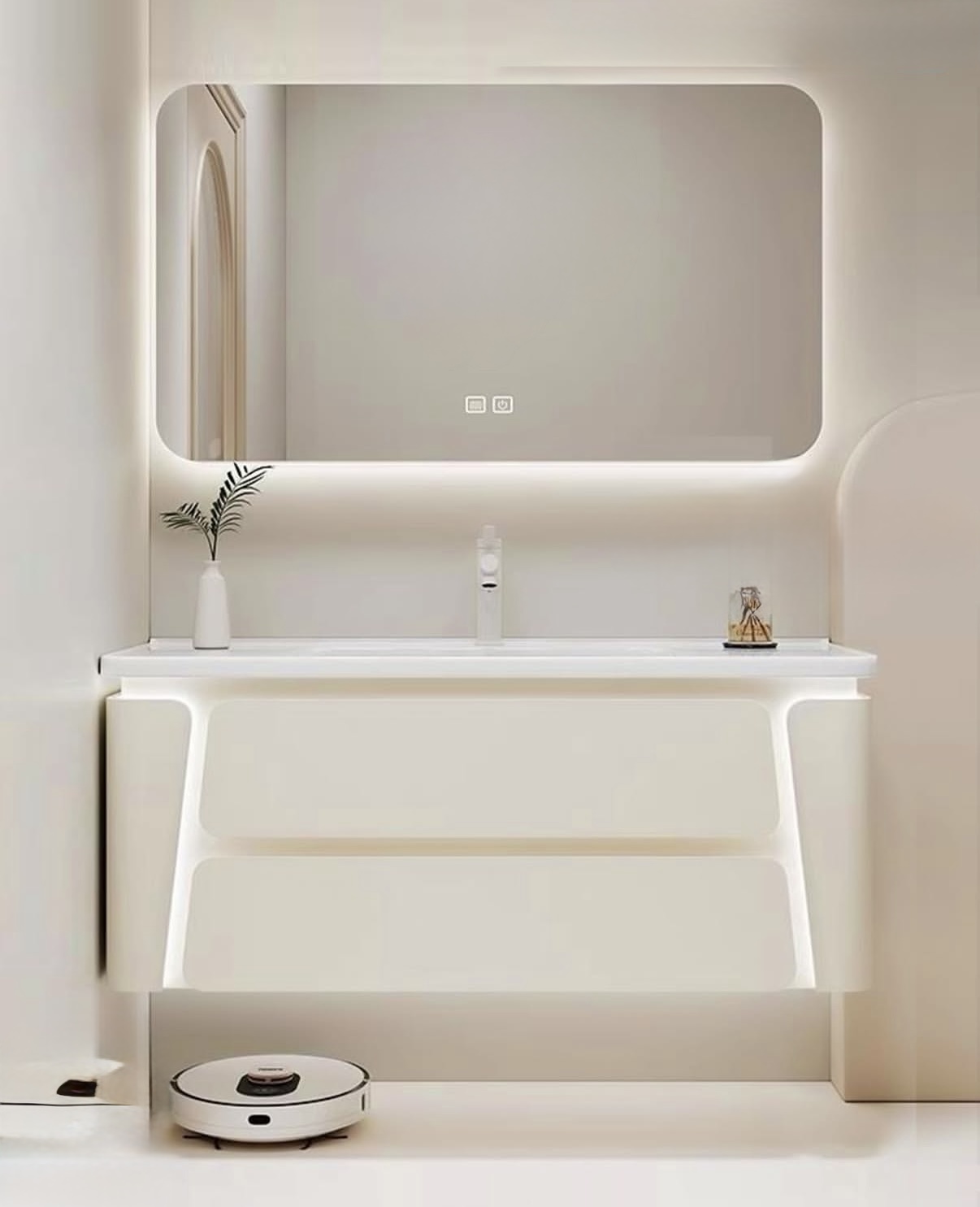 SIZE 80cm cabinet washbasin with LED mirrors in 3 modern colors.