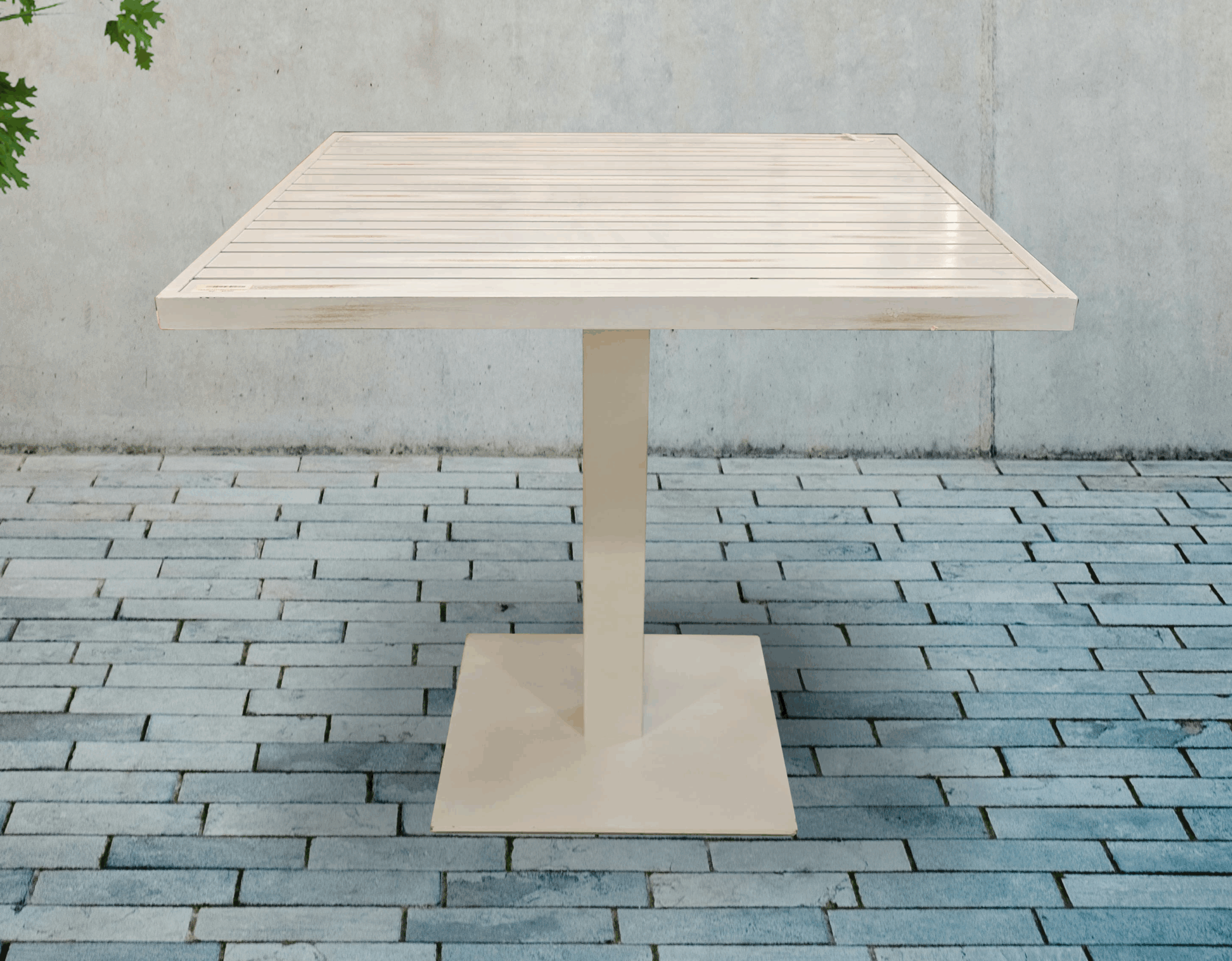 “SQUARE,ALUMINIUM TABLE TOP ONLY.SIZE:80X80 CM.COLOR;NEW ANTIQUE WHITE.”