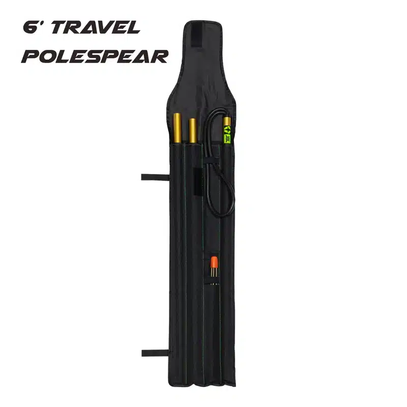 JBL travel polespears pack light and are ready for adventure. They’re made from 6061 aircraft grade aluminum and feature a tapered front section and precision machined thread unions. The result is a polespear that’s responsive, hydrodynamic, and so seamless it feels like a single piece. Tailor your polespear to the hunt, length can be adjusted by adding or subtracting sections. Each polespear comes with a barbed paralyzer spearhead and rolls up in a compact travel bag for on-the-go diving. They’re the ideal polespear for travelers, hunters, or anyone tight on space.