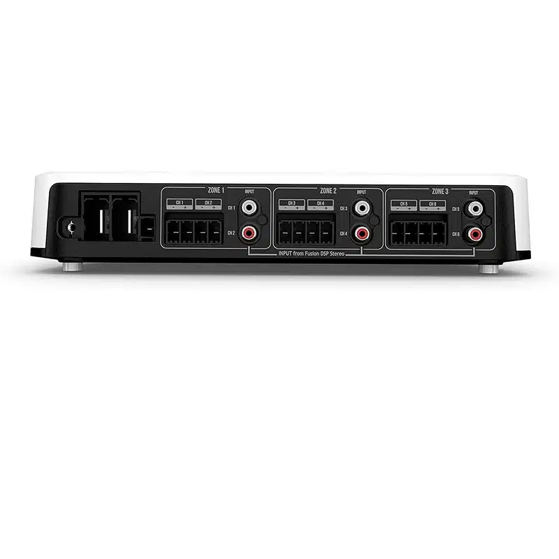 Amplify the moment with an Apollo™ marine amplifier – designed specifically for use with your Fusion® DSP-enabled marine stereo and Fusion speakers. This powerful and efficient 6 channel amplifier is the difference between hearing the music and feeling it. With an impressive 150-watt RMS per channel (at 4 ohm), this amplifier can power up to six pairs of speakers or four pairs of speakers and one subwoofer. The Easy Tune feature automatically regulates audio settings for the best sound quality without manual adjustments (Requires setup using the Fusion-Link™ app on a compatible smartphone).