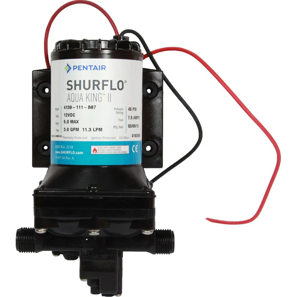 The Shurflo Aqua King™ II Standard Fresh Water Pumps’ design was created with unique over-molded single-piece diaphragm and internal by-pass (3.0 version only), assuring long life and top performance in all plumbing systems.