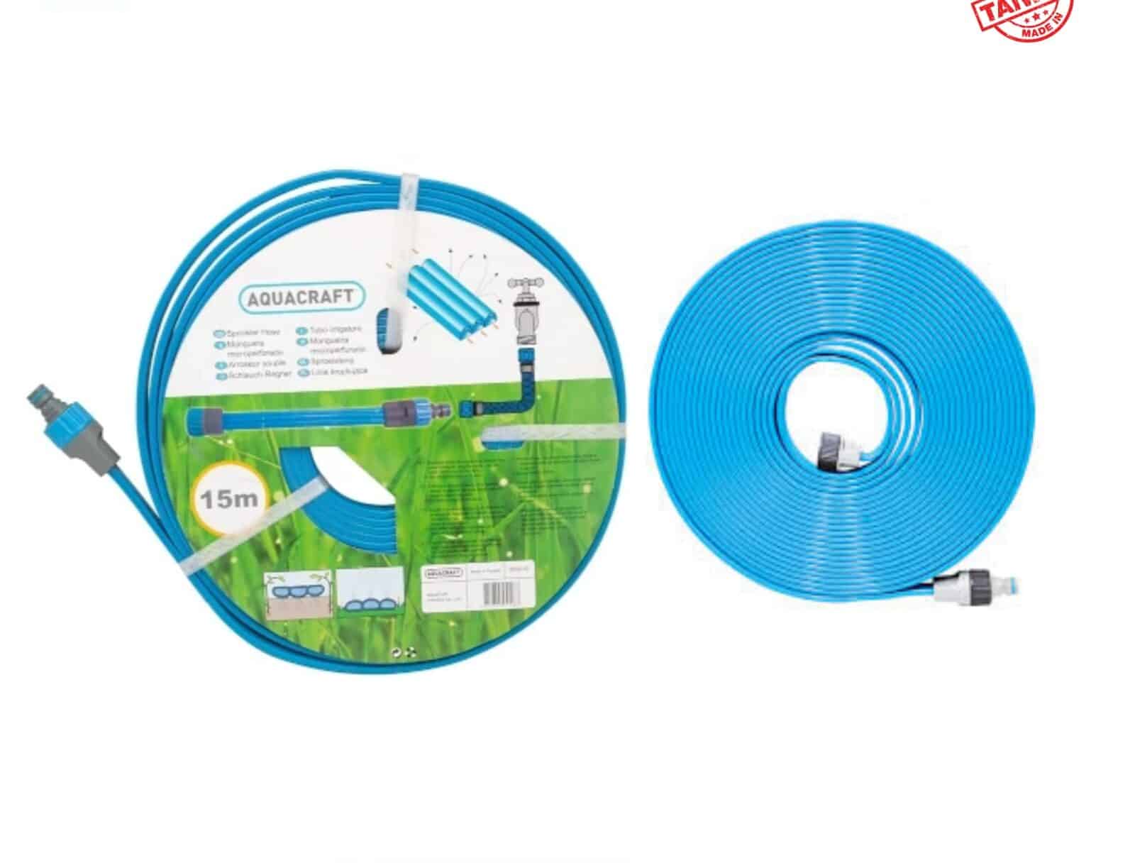 Keep your garden flourishing with the Aquacraft Sprinkler Hose, designed to ensure even and efficient water distribution. This 15-meter sprinkler hose features evenly spaced holes that provide gentle, uniform watering—perfect for lawns, flower beds, and garden borders. Made in Taiwan, it combines durability with flexibility, making it an ideal choice for homeowners who want a simple, effective irrigation solution for vibrant, healthy greenery.