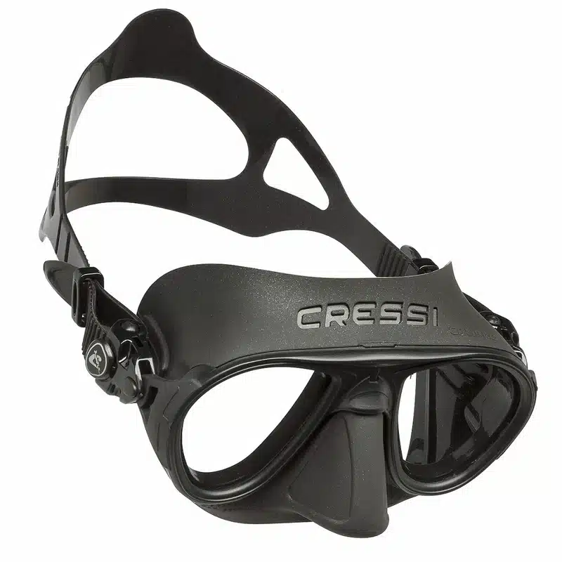 Cressi’s Calibro combines minimal internal volume with a phenomenal field of view due to the raked angle of the frame.