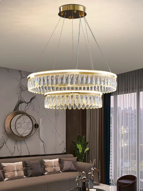 CHANDELIER LED Modern Dimmable Chrome Gold Home Deco Crystal Oval Lighting