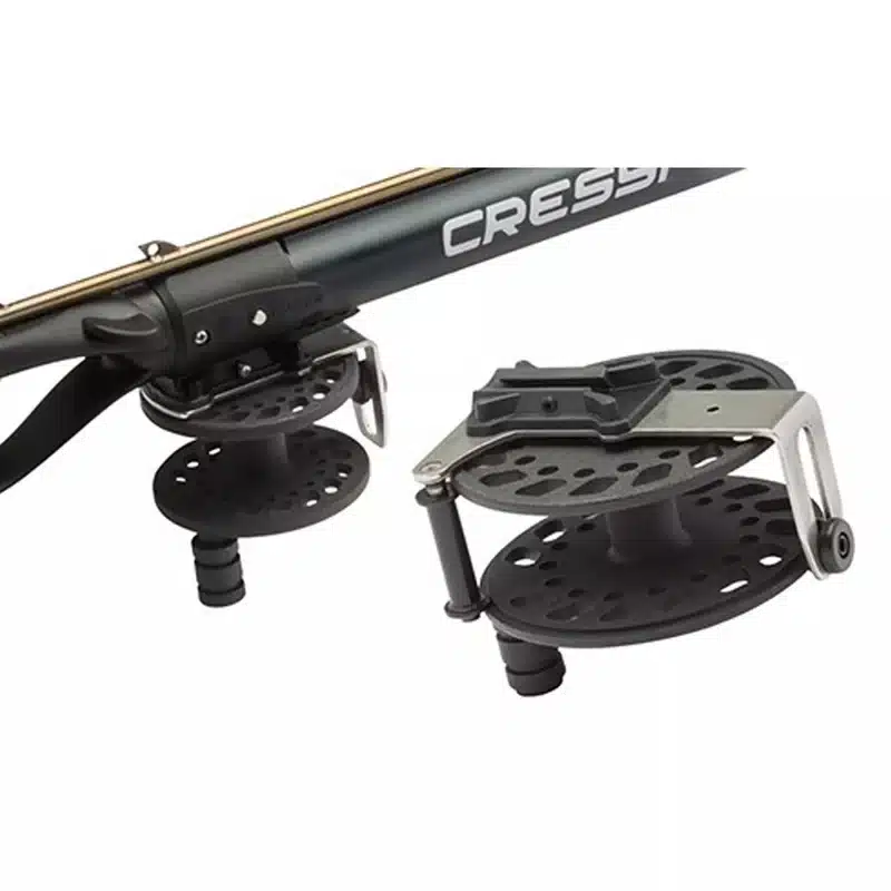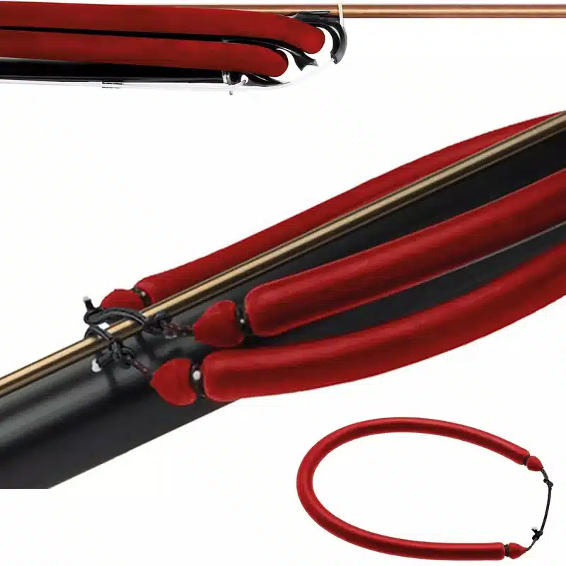 The open muzzle has a cobra design featuring softer angles for the bands, decreasing the friction that could reduce its life. It is designed so that if used with dual bands, both work equally without any interference. The muzzle features the magnetic spear lock system: two magnets are integrated into the muzzle in a watertight chamber. The magnets are very helpful, keeping in place the shaft in position and aligned with the speargun. This characteristic allows to load it faster without the disadvantages of conventional mechanical restraint systems.