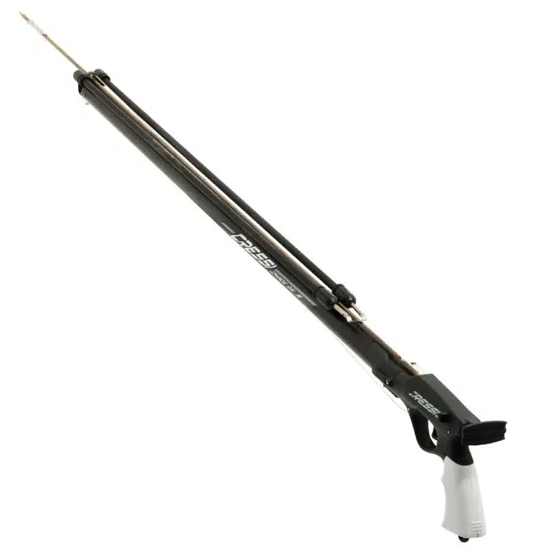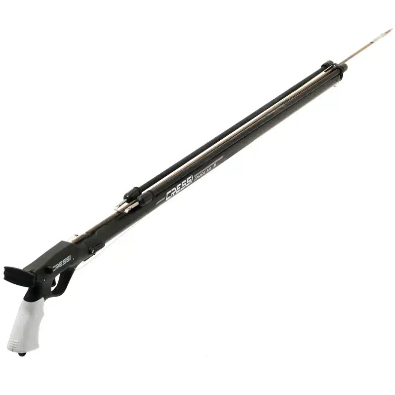 The Comanche Rail is the latest version of Cressi’s world champion spear gun. The high strength, anti-corrosion aluminum barrel now features an integrated guide rail for increased accuracy. The high-tech and light weight modern thermoplastic hand grip and muzzle guarantee the upmost maneuverability in the water, adding to the Comanche Rail’s accuracy.