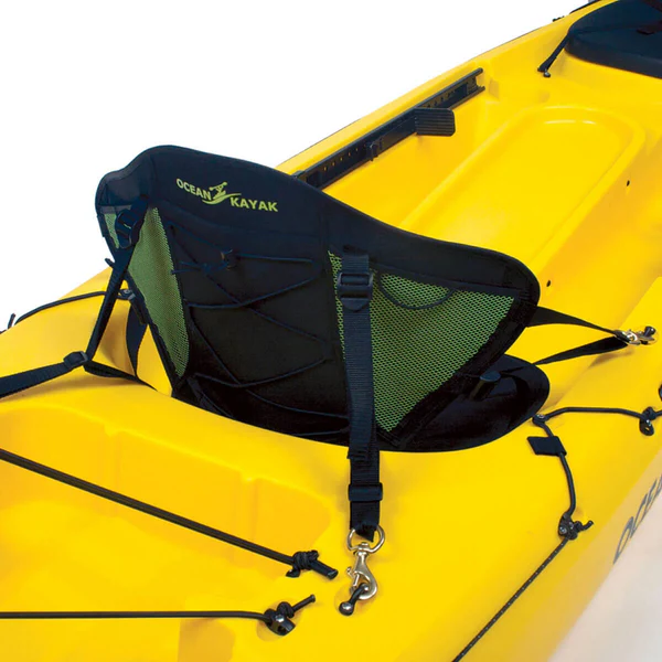 Perfect for a full day on the water, the Ocean Kayak Comfort Zone Seat Back is taller for additional back support, and the seat padding has cushioning for a softer ride. The compression molded design, of polyester and EVA foam, has channels that encourage airflow creating a built-in ventilation system to help keep you cool and dry. The seat attaches using brass swivel buckles.