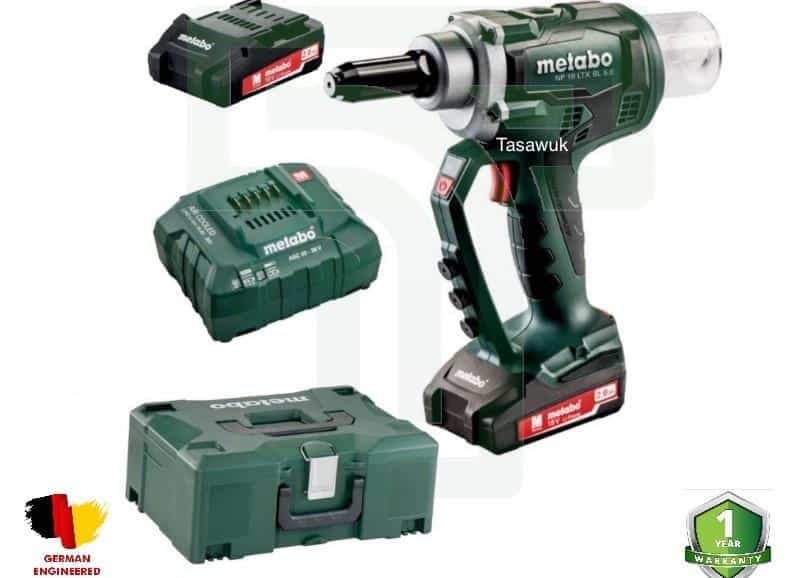 The Metabo 18V Cordless Blind Rivet Gun with 5.2Ah batteries is a high-performance tool for demanding riveting tasks. The cordless design allows for maneuverability, and the powerful motor ensures efficient fastening of various rivet sizes. The extended-capacity batteries provide long runtime for completing multiple riveting projects.