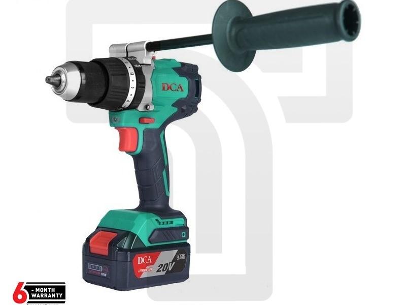 The DCA Cordless Hammer Drill is a versatile tool for drilling and hammering tasks in various materials, including concrete, masonry, and brick. The cordless design provides excellent maneuverability, and the hammer function delivers additional power for penetration in hard materials. The high-capacity 18V batteries (4.0Ah) ensure extended runtime for continuous drilling and hammering projects.