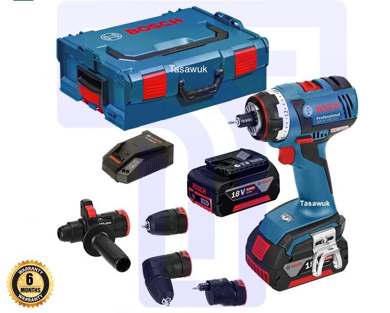 The Bosch 18V Cordless Right Angle Drill with high-capacity 4Ah batteries is a powerful and long-lasting solution for demanding drilling tasks in tight spaces. The right angle design allows for easy handling in confined areas, and the extended runtime ensures continuous operation.