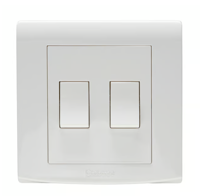 Control lighting from multiple locations with the reliable Crabtree 10AX 2 Gang 2 Way Switch. This versatile switch is suitable for various applications, like controlling hallway or staircase lighting. It features a 10AX rating for handling standard lighting loads and is crafted from high-quality materials for long-lasting performance.