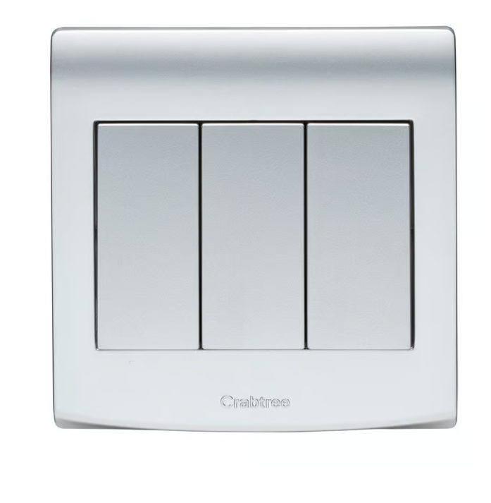CRABTREE 10AX SP 3 gang 2 way switch WR SILVER