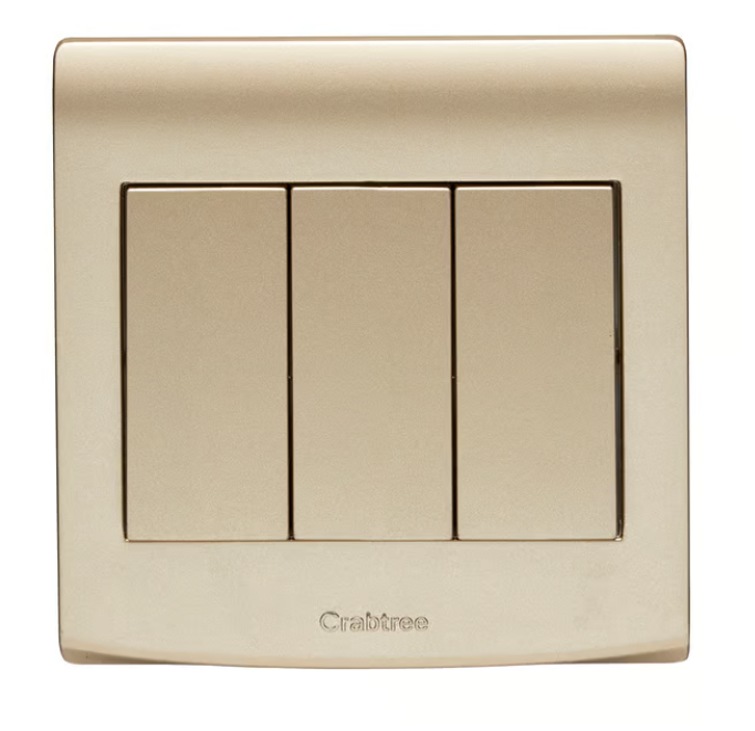 Elevate your décor and control lighting across large areas with the luxurious Crabtree 10AX 3 Gang 2 Way Switch in a stunning gold finish. This versatile switch allows you to control lighting from different locations, ideal for controlling multiple rooms, hallways, or large spaces. It features a 10AX rating for handling standard lighting loads and is crafted from high-quality materials for long-lasting performance. The gold finish adds a touch of elegance to any space.