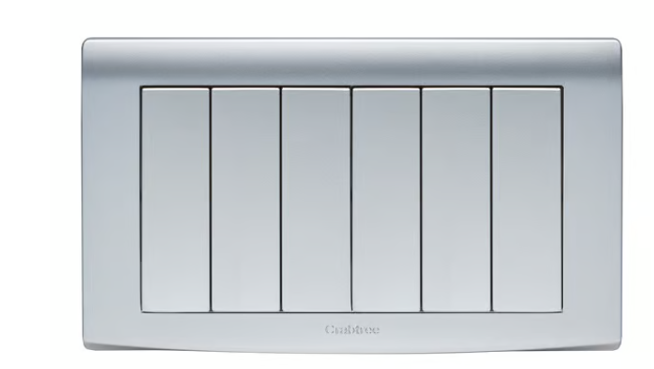 10AX SP 6 GANG 2 WAY SWITCH WIDE ROCKER SILVER.