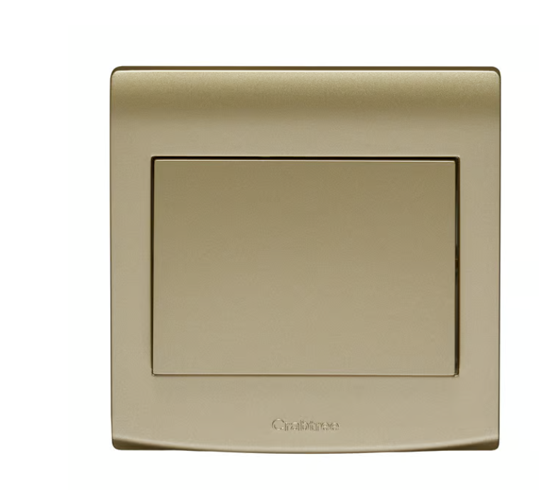 Add a touch of elegance to your space while controlling your lights with the Crabtree 10AX 1 Gang 1 Way Switch in a luxurious gold finish.