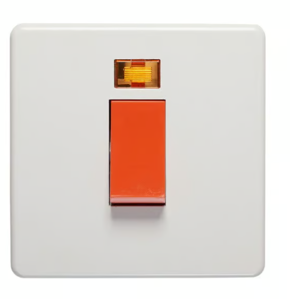 Effortlessly control high-powered appliances with the reliable Crabtree 45A Single Gang Switch with Neon Indicator Light (White Finish).