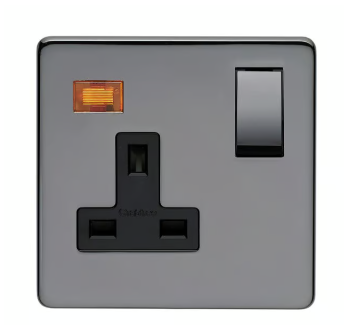 Combine functionality with style using the Crabtree 13A 1 Gang Double Pole Switched Socket with Neon (Part of the Crabtree Platinum Range). This socket features a double pole switch for added control and safety, and a neon indicator to easily locate the switch in low light. Rated for 13A, it can handle most household appliances. Crafted from high-quality materials for long-lasting performance, the sleek platinum finish complements modern decors.