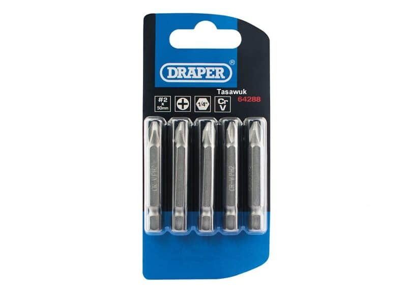 Drive Phillips screws securely with Draper’s durable 1/4″ hex, 50mm long cross screw bit. Ideal for power drills & screwdrivers.