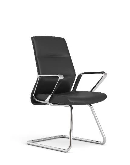 Create a regal experience for your visitors with the Depa Visitor Chair. This luxurious chair features genuine leather upholstery for the seat and backrest, adorned with minimalist linear stitching. Choose from genuine or vegan leather options in Black, Grey, or Khaki to suit your style. The chair’s armrests are crafted from aluminum alloy, elegantly floating on chrome electroplated steel legs.