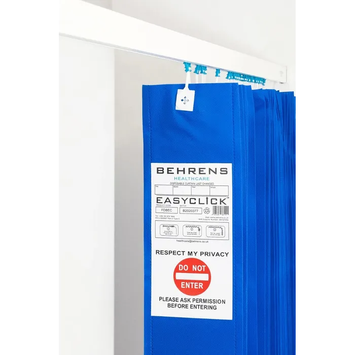 Disposable Curtain With Eastclick Hooks 7.5m X 2m Hospital Blue Microguard – Burnshield – FDABEC