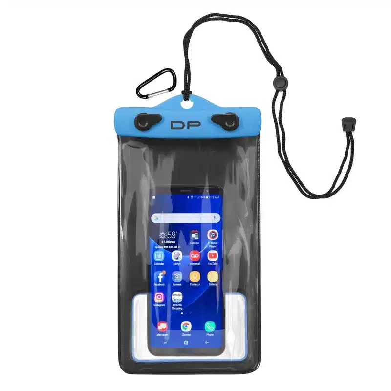 5″ wide x 8″ long\n\n Clear TPU front and back camera window with high visibility border Adjustable neck lanyard & anodized aluminum spring hook Bright sealing clip for high visibility For beach, pool, boating, snorkeling and more.