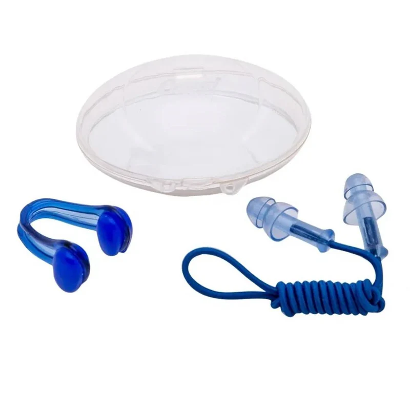 The Silicone Ear Plugs and the Nose Clip prevents water entering while swimming.