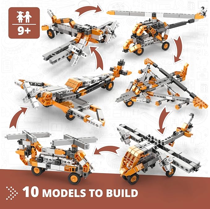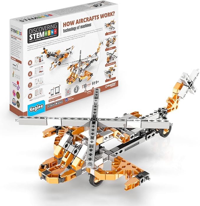 • KIDS LEARN all about aircrafts, learn how pilots control a plane, which forces affect a flight and how do helicopters fly. Build 10 working models such as a helicopter, a proplane, a chinook and more.