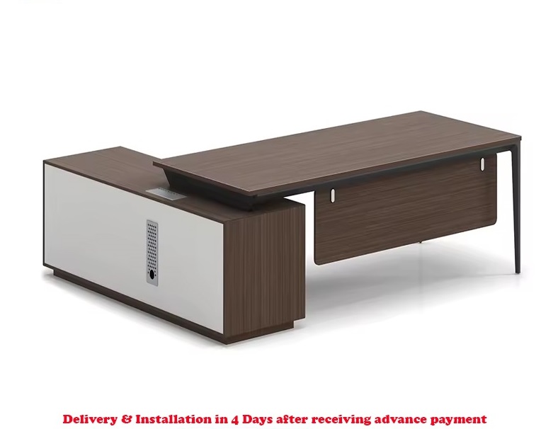 Executive Office Desk with Cabinet – 3 offers a sleek and functional solution for professional workspaces. With dimensions of 200 x 75 x 80 cm, it includes a side cabinet for convenient storage. Delivery and installation are completed within 4 days after advance payment, ensuring a quick and hassle-free setup.