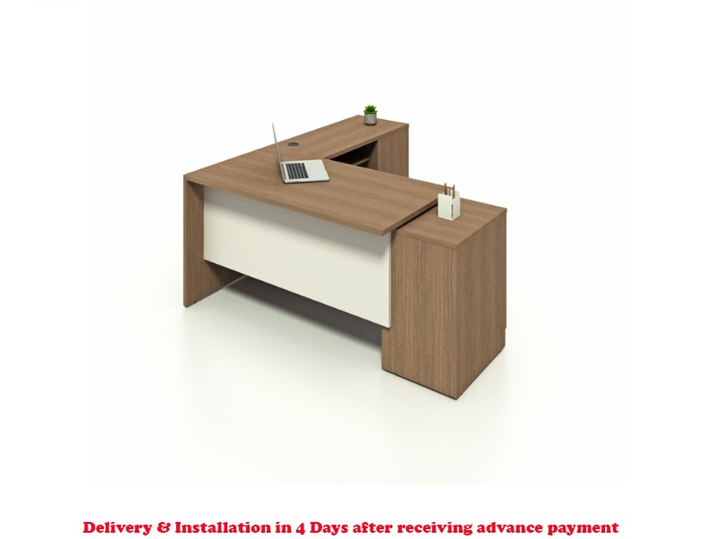Executive Office Desk with Cabinet – 6 is a perfect blend of style and functionality for smaller office spaces. With dimensions of 150 x 75 x 80 cm, it includes a side cabinet for organized storage. Enjoy swift delivery and installation within 4 days after receiving advance payment, providing a hassle-free solution for your office needs.