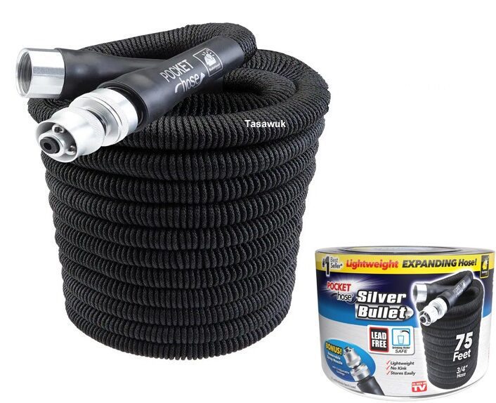 The Silver Bullet Expandable Pocket Hose (3/4″ x 100ft) delivers effortless watering with its lightweight, compact design that expands to a full 100 feet for maximum reach. Built for convenience, this Expandable Pocket Hose retracts into a small, easy-to-store size after use, making it perfect for large gardens, patios, and outdoor cleaning. Its flexible, durable build ensures smooth water flow with minimal tangles, ideal for users needing a portable pocket hose, long 100 ft hose, or flexible shrinkable hose. Designed for long-term performance, it offers excellent reach, portability, and user-friendly handling. Key features include expansion ability, lightweight construction, kink resistance, and quick storage.