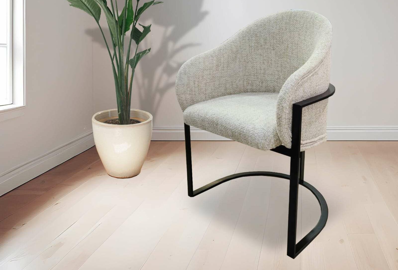 CHAIR – BEIGE FABRIC WITH METAL LEG