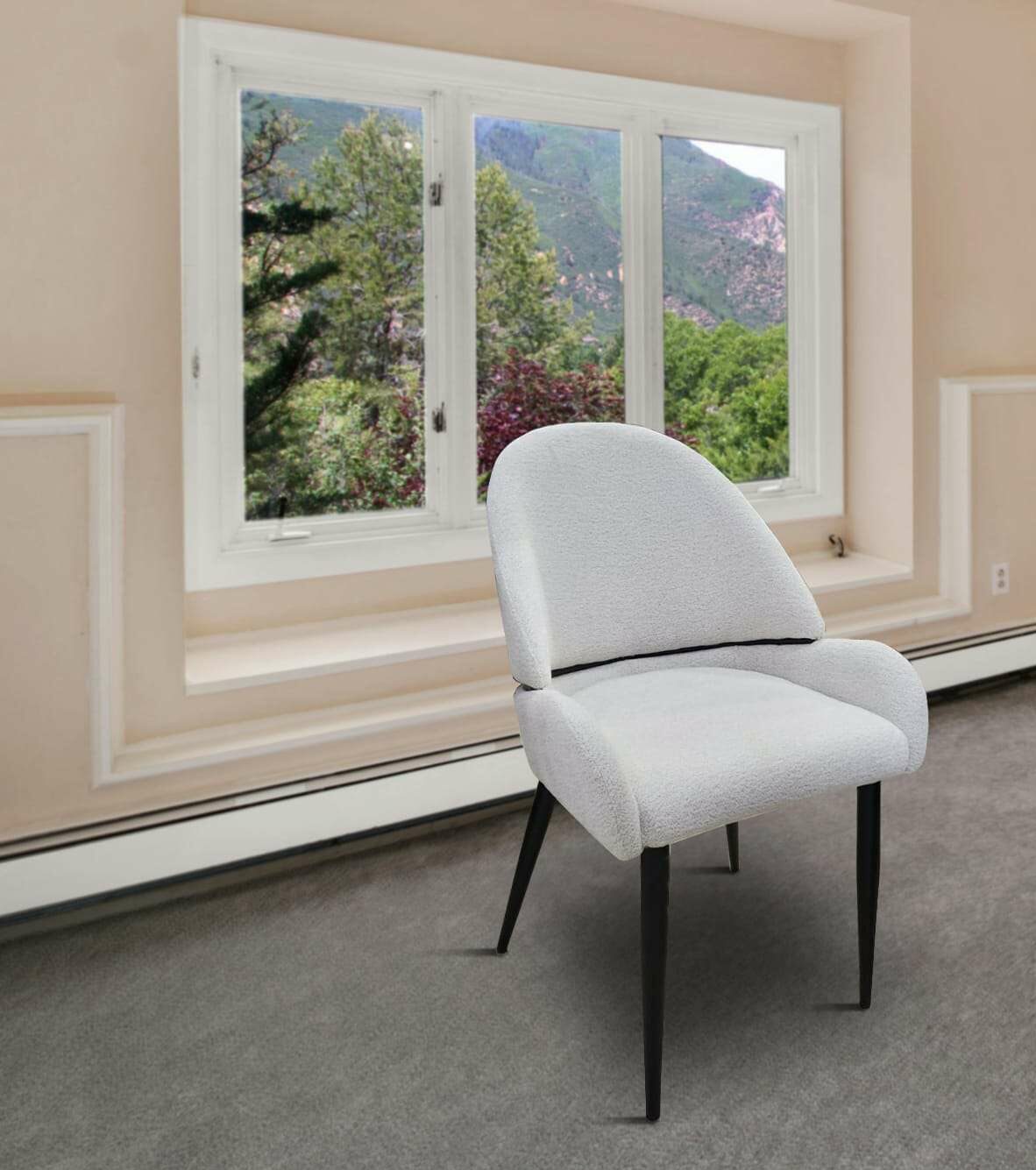 Dining Chair- Seat & Back: White Fabric #RAVEN-22 Leg: Black powder coating