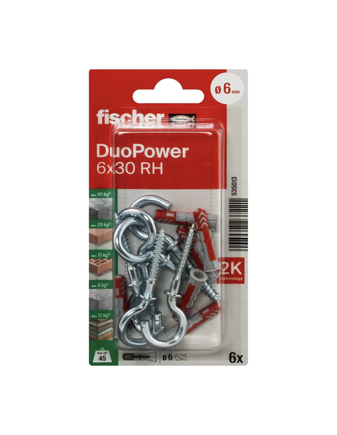 FISHCHER DUOPOWER 6X30 RH K NV PLUG + ROUND HOOK 6PCS