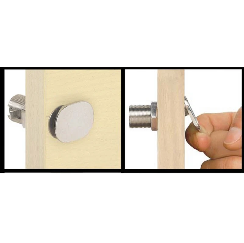 Universal lock almost flush with the panel.