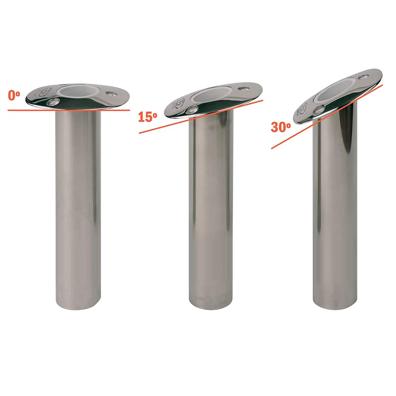 Made of 316L stainless steel, these flush mount rod holders feature a wide low profile cap for excellent mounting strength and to enhance the appearance of any boat.