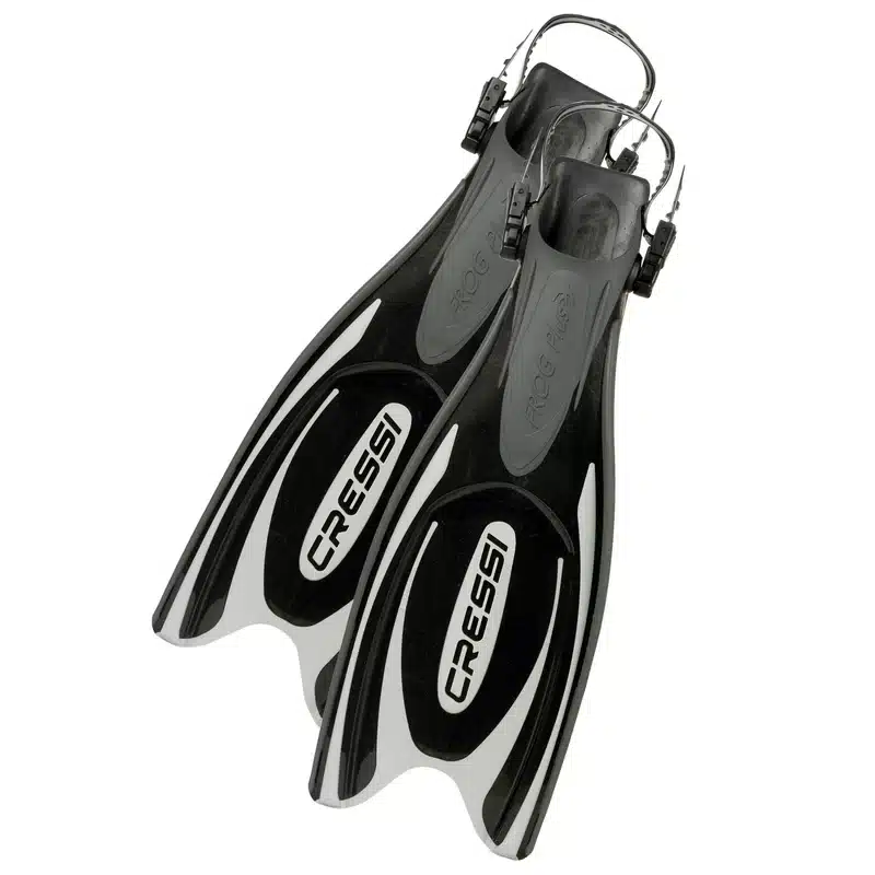 Cressi’s latest addition to its extensive line of world renowned fins is the Frog Plus open heel scuba diving fin. The Frog Plus features many of the great characteristics of a traditional paddle fin along with introducing a revolutionary new blade material that is both extremely durable and nearly indestructible. The Frog Plus utilizes
