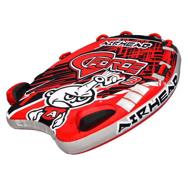 Designed to withstand time from the inside out, G-Force 3 has a tough 30 gauge virgin PVC bladder and is equipped with a heavy-duty Kwik-Connect tow points for easy and secure hook-ups. And with an 840 denier double-stitched nylon cover, this 3 person towable tube offers the ultimate towable tube experience. Order this 3 person boat tube from Airhead today.