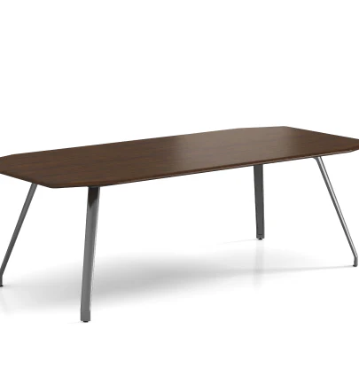 The exceptional executive meeting table in veneer showcases a three-dimensionally soft curving veneer worktop and comfortably accommodates 6 to 8 people, offering a stylish and functional space for productive discussions. With aluminum alloy legs, this table combines functionality and stability seamlessly.
