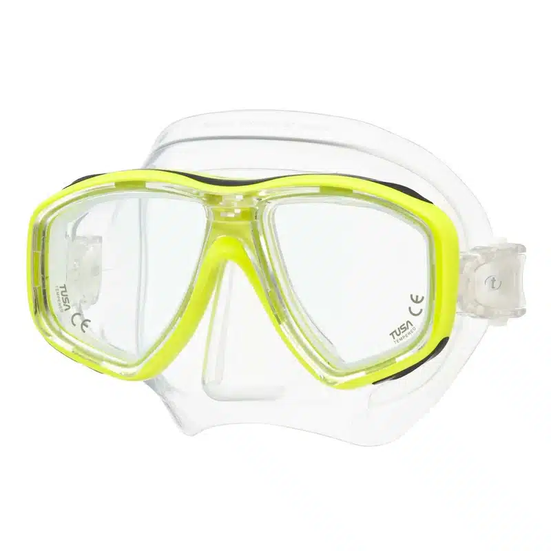 TUSA M28 Geminus Diving Mask. Shatter resistant tempered glass design delivers excellent vision and strength.