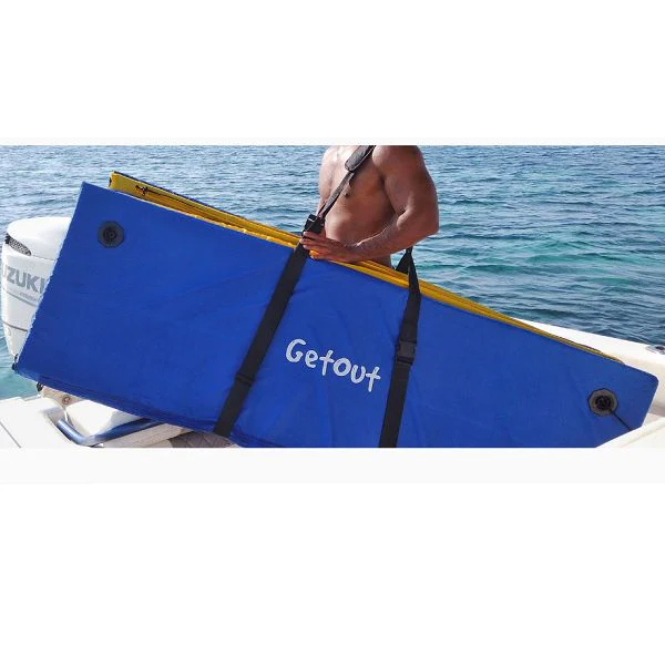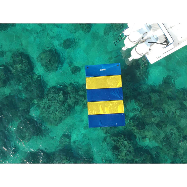 Float the summer away with Getout Floating Mat! This flexible 5-panel mat is connected with a zipper for simple setup and storage. It includes a carrying shoulder strap, Bungee cords, and two storage straps with release buckles make it easy to transport and store.