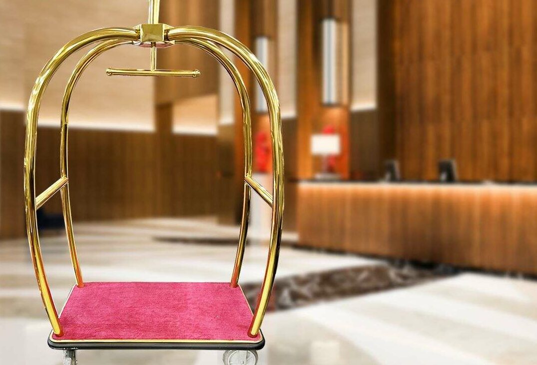 GOLDEN STAINLESS STEEL LUGGAGE TROLLEY