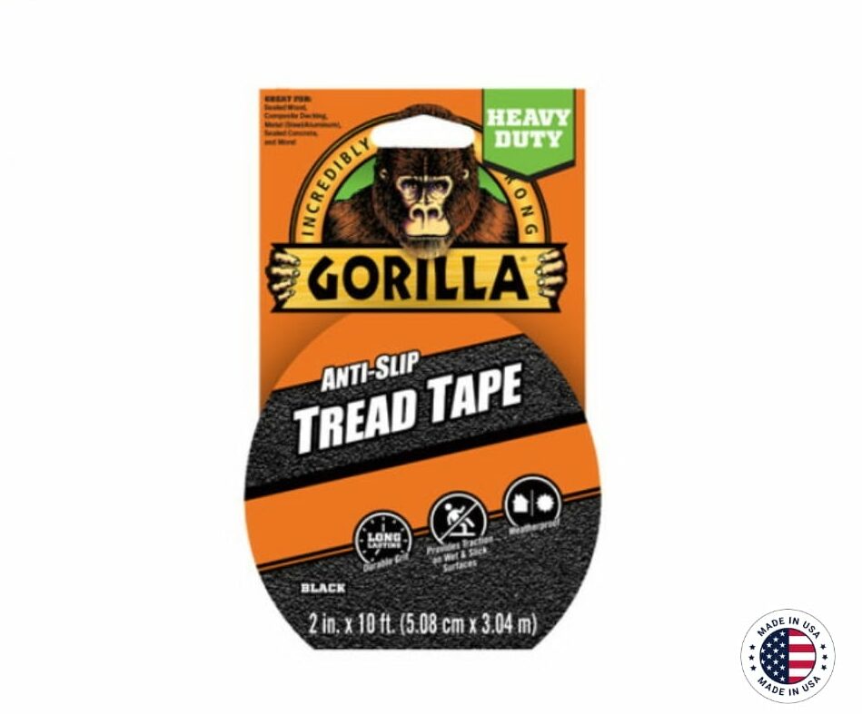 Gorilla Anti-Slip Tread Tape (2″ x 10ft) is a durable, textured tape that enhances traction on slippery surfaces indoors and outdoors. This self-adhesive tape is ideal for steps, stairs, ramps, and other areas prone to slips and falls.