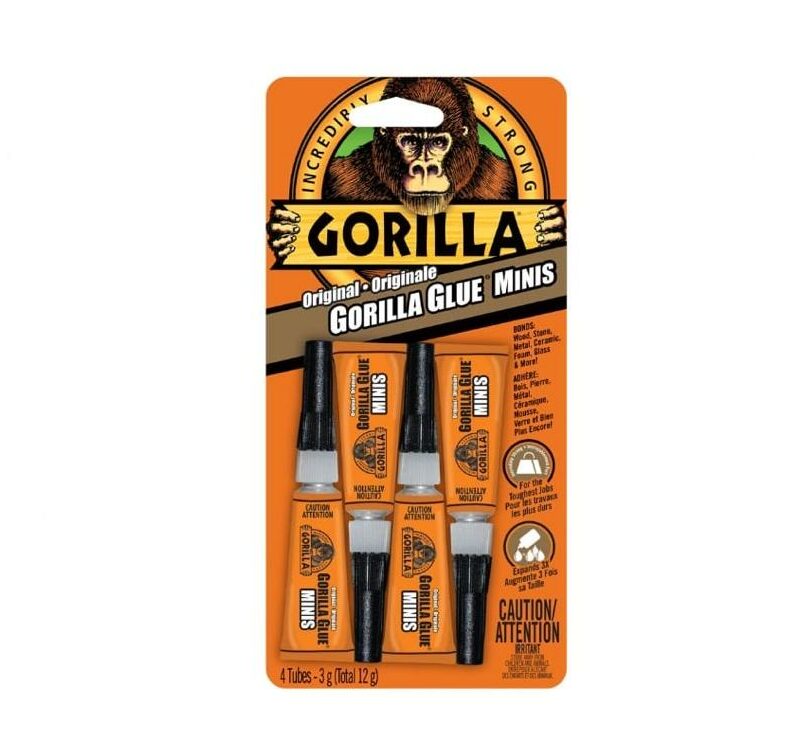 Gorilla Original Glue Minis (12 gm) packs powerful bonding in a convenient, small-sized bottle. This versatile all-purpose glue is ideal for a wide range of repairs and crafting projects. The clear, fast-drying formula creates a strong, long-lasting bond on various materials, including wood, metal, plastic, ceramic, and more. The easy-to-use squeeze bottle allows for controlled application, making it perfect for small repairs and detailed crafting.